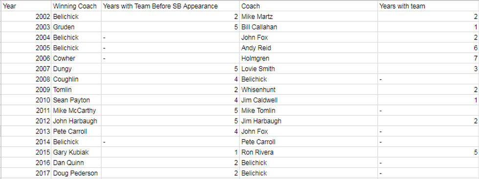 Years with a Team Before an NFL Coach Coached in the Super Bowl