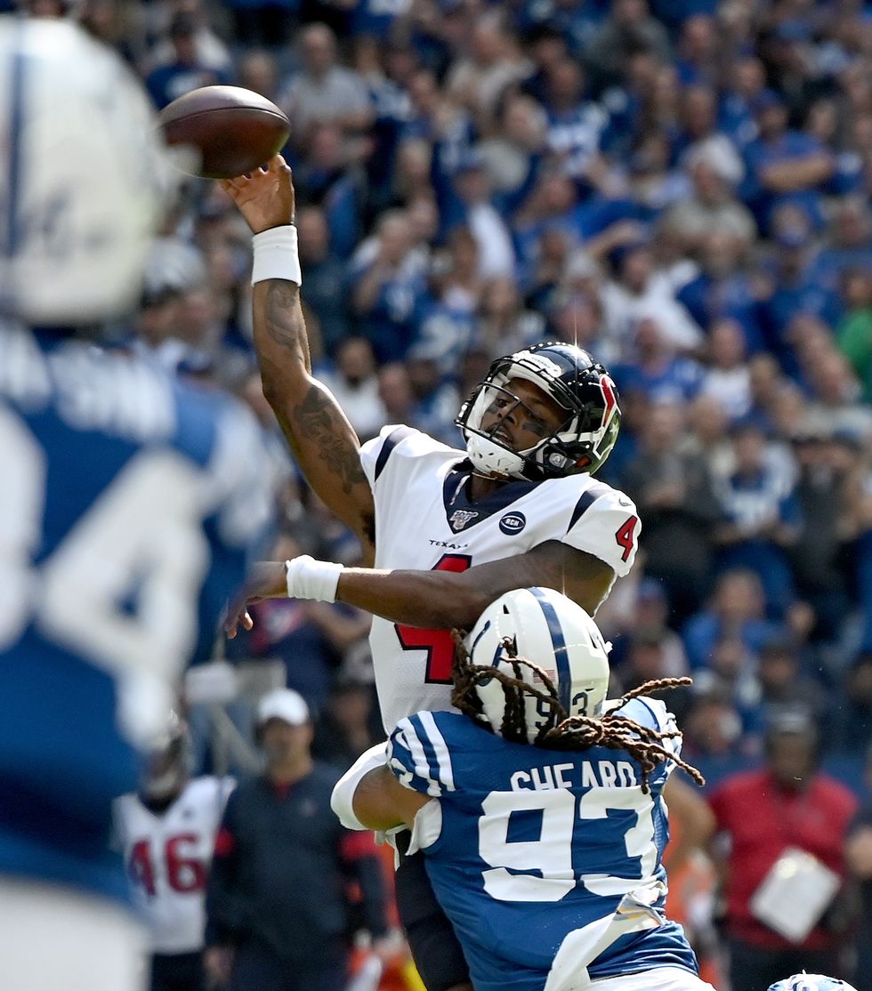 The Texans finally allowed a sack and regular pressure again. Some would say, it's fun while it lasted, but this is closer to an anomaly than the standard. I'm not foolish enough to think Deshaun Watson will be clean every game he plays but I think the Colts deserve some credit with their scheme and attack.