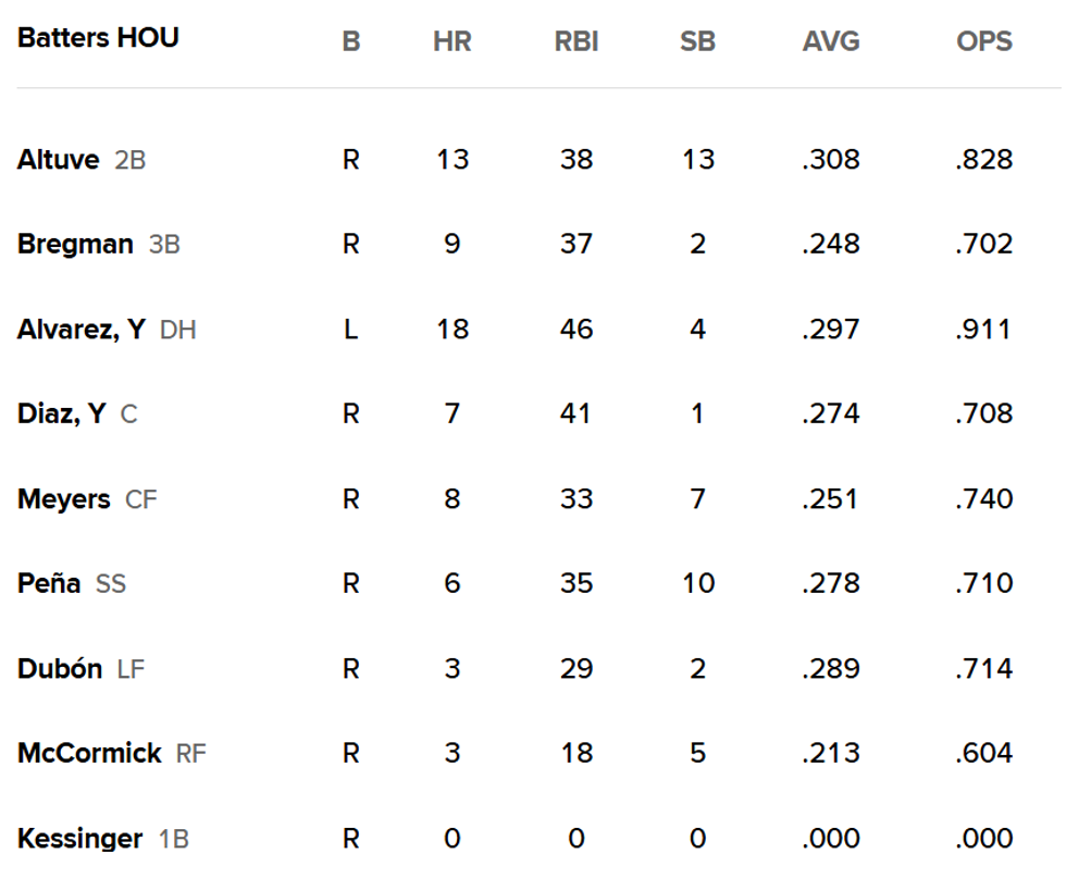 Over the next two weeks before the All Star break, the sample size will get bigger, and we'll have a better idea of who deserves the most playing time. Hopefully, Kyle Tucker will return around that time, and that will make cracking the lineup even harder for these guys.