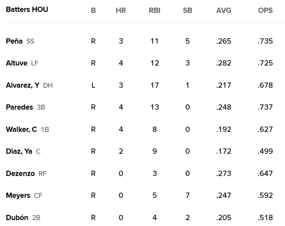 Here's a sneak peek at the Astros lineup. Altuve is once again batting second after asking manager Joe Espada to move him down in the batting order. Zach Dezenzo is playing right field with Cam Smith getting the night off. Jake Meyers is back in center field and Mauricio Dubon is starting at second base.