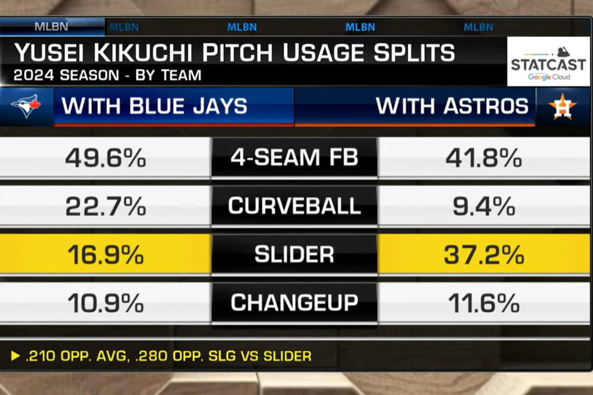 Fortunately for the Astros, they saw something that nobody else did. Not only has a change of scenery helped Kikuchi elevate his game, but also the changes he's made to his pitch mix.