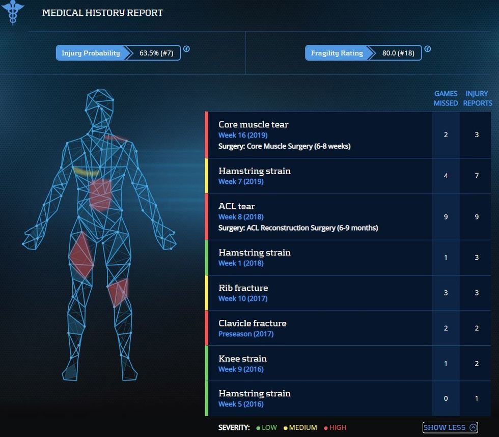 Fuller endured his first hamstring injury in 2018, and it sidelined him for one game. A year later, that same injury caused Fuller to miss four games during the 2019 season.