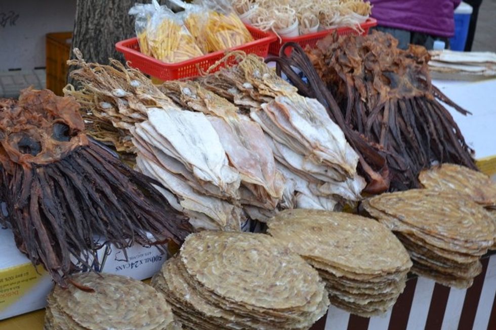 Heading into the stadium itself we weren't exactly greeted with peanuts and cracker jacks as we had been raised on at the ball park. Instead, we were offered an enticing spread of dried squid jerky and fish cakes.