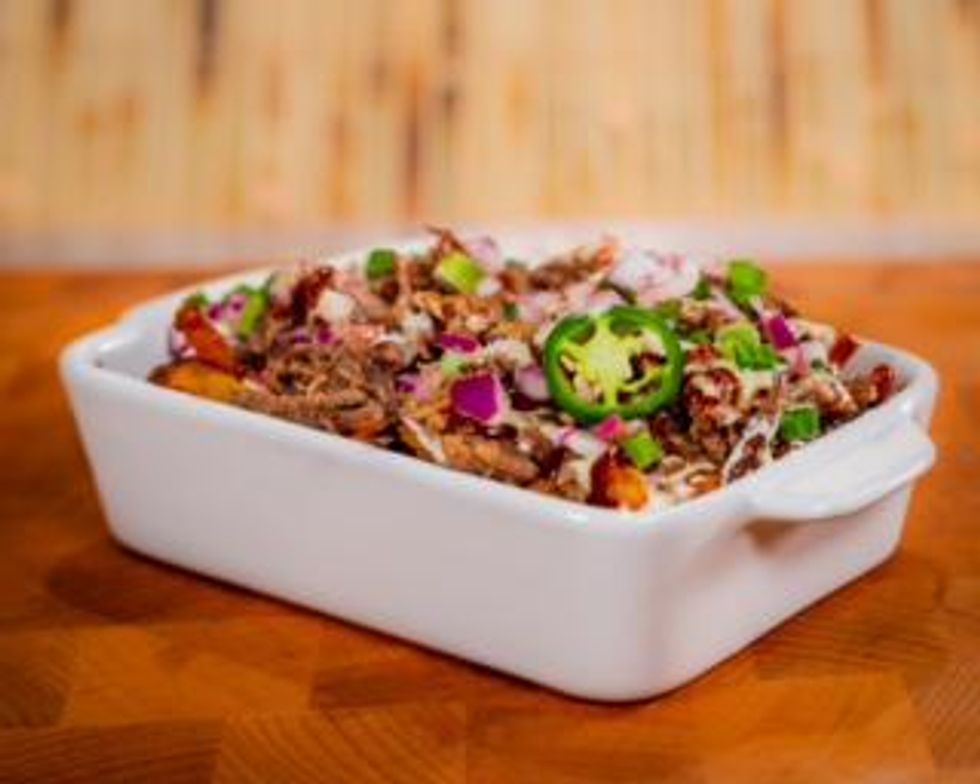 Minute Maid Park is represented by a new item called Astros Cowboy Fry – a big ol' platter of fresh-cut French fries topped with queso blanco, chopped brisket, jalapeno ranch and green onions with a drizzle of BBQ sauce. Astros Cowboy Fry is available at Texans Legends Grills behind Sections 134 and 231 and costs $13.99.