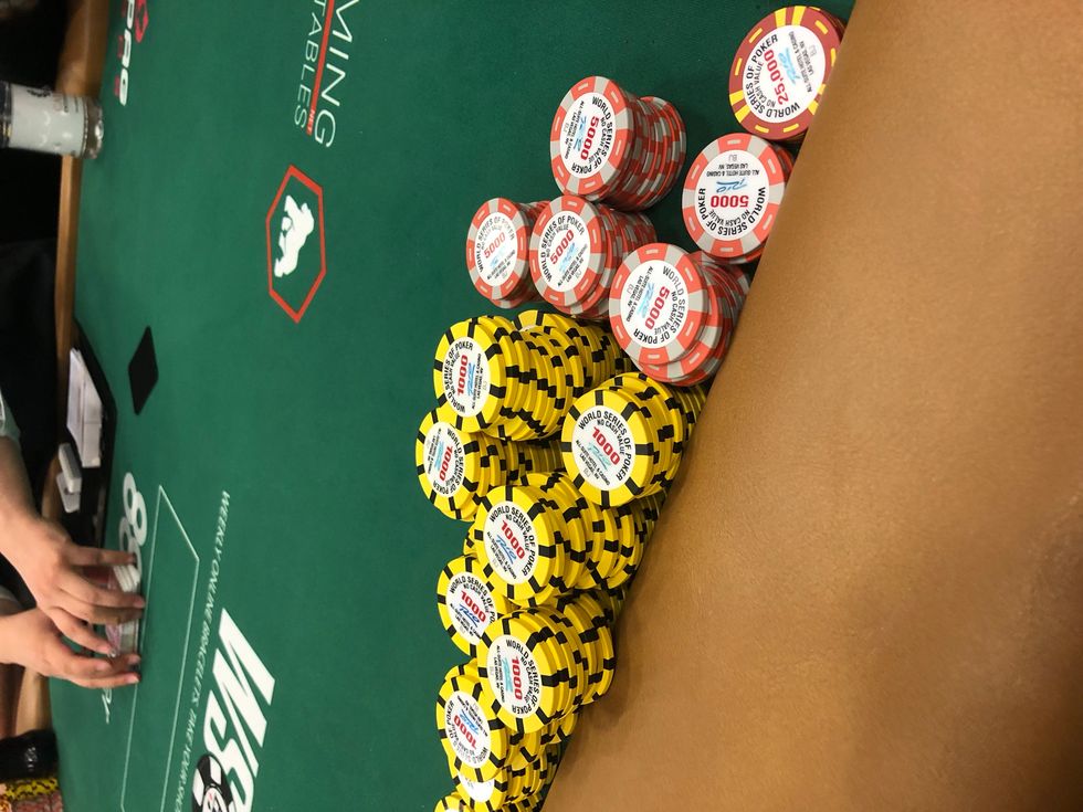 One of the fun parts of Day 1 is all the familiar faces. I saw actor James Woods get knocked out, played with a couple former main event champs, including 1983 winner Tom McEvoy, who was an absolute delight to play against. After my screwup, I really settled down and began playing my best poker. In a way it was a positive, because I would trust that little voice the rest of the way.