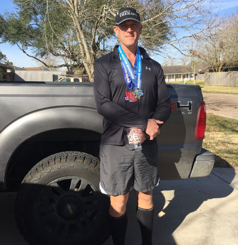 It turns out that Lee started running about 5 years ago and lost 120 lbs. This was his first full marathon. Despite a nagging ankle injury, he finished in 6 hours 07min before collecting his medal. According to Lee, his favorite part of the race was all the support and hospitality. He loved the course and the port-o-potties were immaculate. His next race is the Seabrook Marathon. You go Lee!