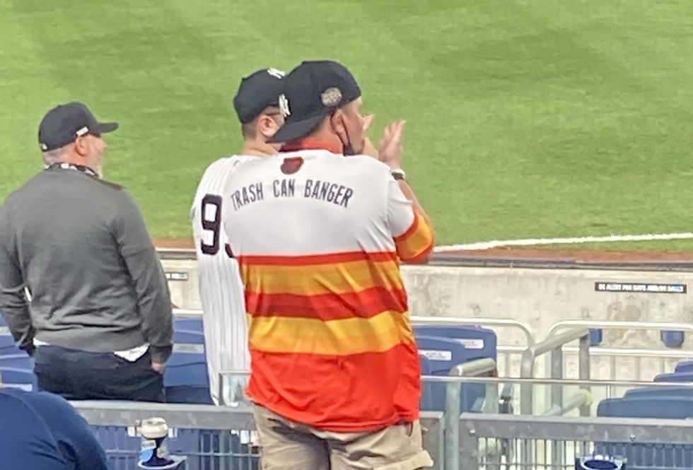 One fan wore an Astros jersey that had "Trash Can Banger" on the back instead of a name. There was a sign with Altuve's head sticking out of a garbage can like Oscar the Grouch on Sesame Street. A sign said "Cheater, Cheater, Pumpkin Eater." Another sign had only a simple, large asterisk on it. Sorry, buddy, the Astros 2017 championship stands.